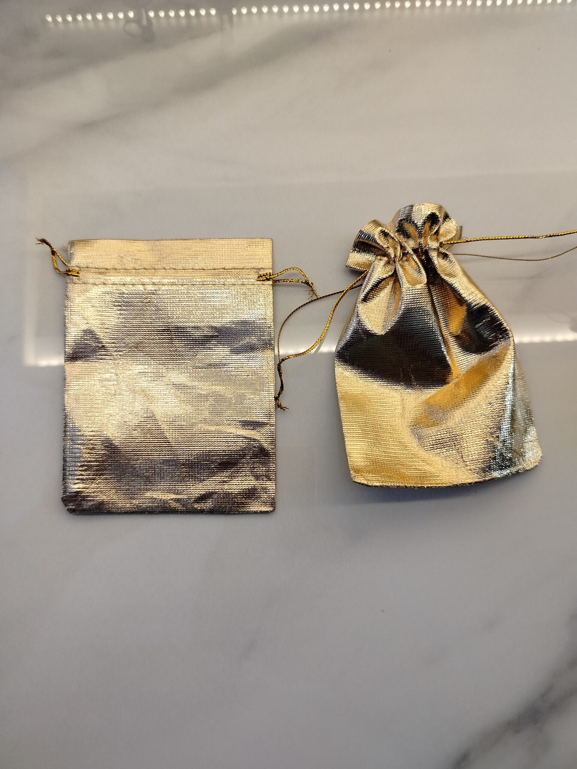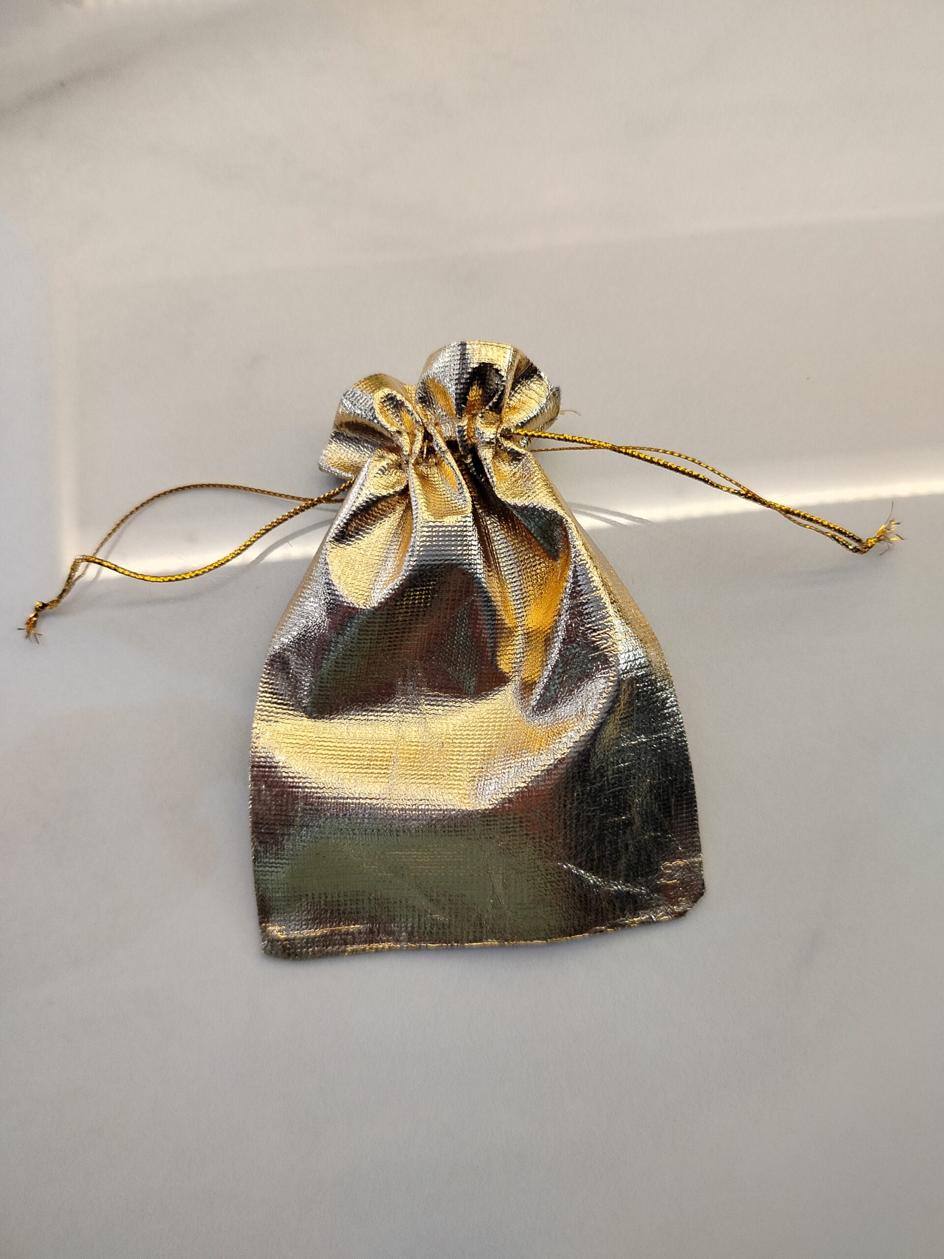 5 adet mini takı kesesi, takılarınızı düzenli ve güvenli bir şekilde saklamanızı sağlar.; – 12 cm x 9 cm boyutlarındaki bu keseler, küçük takılarınızı kolayca taşımanız için idealdir.; – Altın rengi tasarımı ile şık ve modern bir görünüm sunar, takılarınızın estetiğini tamamlar.; – Yıkama talimatı belirtilmemiştir, bu nedenle ürünün uzun ömürlü kullanımını garanti eder.; – Materyal bileşeni belirtilmemiştir, ancak dayanıklılığı ve kalitesiyle dikkat çeker.;